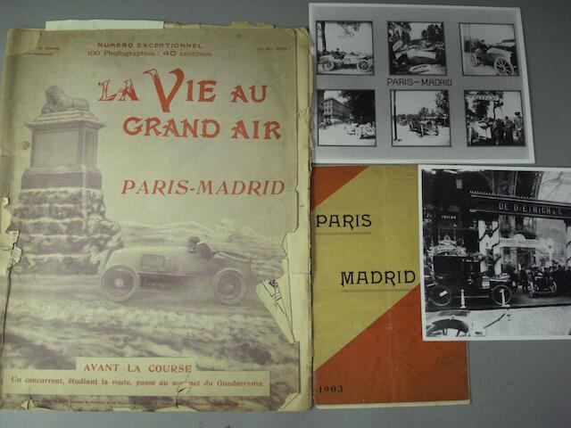 A prova (misto de rallye e corrida), aconteceu em maio de 1903, organizada pelo Automobile Club de France (ACF) e pelo Automóvil Club Español. Aliás a França realizou fantásticos eventos neste sentido, sempre partindo de Paris, com destino a Bordeaux, Marseilles, Dieppe, Amsterdam, Berlin e Vienna. Cabe lembrar que desde 1901, depois da prova Paris-Berlin, houve uma determinação (na época expedida pelo Ministro de Negócios Internos - Waldeck-Rousseau), de que haveria necessidade de se expedir uma autorização especial para provas deste segmento - no caso do Paris-Madri tal autorização não era expedida - foi a primeira prova onde no regulamento havia uma cláusula ditando que os veículos deveriam dar toda a sua velocidade e a premiação era de quem chegasse primeiro. O Paris-Madri era fortemente apoiado na Espanha pelo Rei Afonso XIII, além do mais, a imprensa francesa expunha que a França detinha a melhor tecnologia em veículos e estes não poderiam ficar fora de uma prova assim. O presidente da ACF - Barão de Zuylen, conseguiu convencer o Primeiro Ministro francês Émile Combres, de que as estradas realmente eram públicas e abertas e não haveria acidentes (as estradas eram seguras e razoavelmente pavimentadas), e... o público adorava esse tipo de competição, além do mais, os carros franceses iriam passar sempre na frente de vária cidades, fazendo com isso houvesse um aumento nas compras destes carros (cabe lembrar que na época, um número expressivo de trabalhadores - 25 mil - trabalhavam na indústria automobilística francesa - só de exportação nesta época gerou-se mais de 16 milhões de francos por ano). O governo francês cedeu aos argumentos e autorizou a prova.